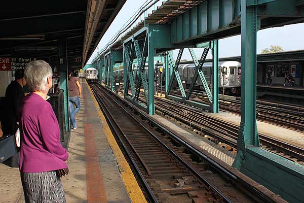 | Togene kører ganske ustabilt på skinnerne, og togene må køre langsomt nogle steder, andre steder kastes passagererne bare rundt. På station med linje 7, en anden med navnet 111. Street, er der rangér- og overhalingsspor sindrigt udformet i midten, der betjenes i myldretiden ligesom med linje J og Z. |