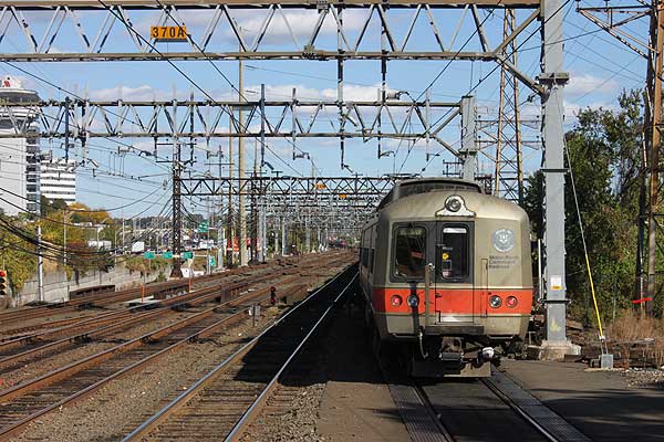 | Et af de ældre M2/4/6 togsæt (koblet fast tre vogne i en enhed) forlader Stamford station, CT. |