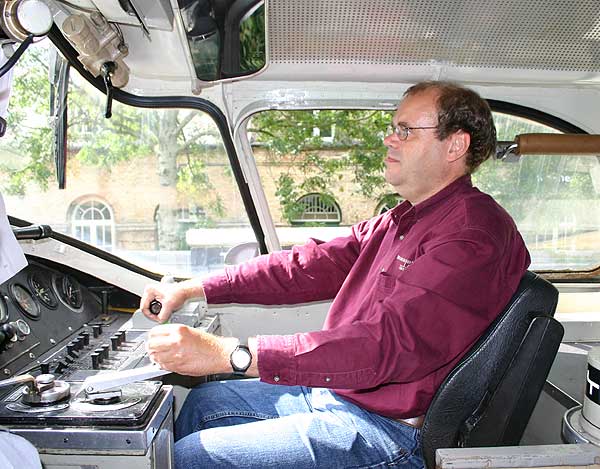 ![]() Poul er velbehageligt placeret i lokførers sæde i MA-togets styrevogn. |
