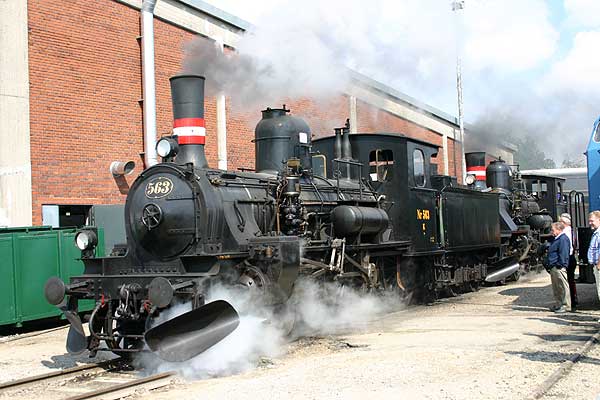![]() K 563 fra 1899 er forrest (Jernbanemuseet, Roskilde), mens K 564 fra samme år er koblet bagpå. K 564 er ny-istandsat og hjemmehørende hos Vestsjællands Veterantog (Dansk Jernbaneklub). |