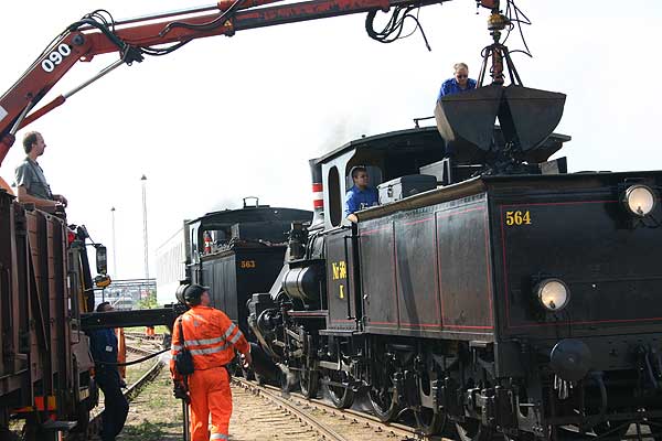 ![]() K 564 skal have toppet sin tender op med kul inden de to maskiner i forspand sættes foran søndagens sidste særtog til Nyborg. |