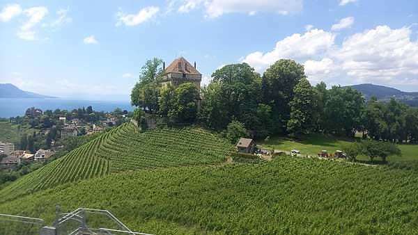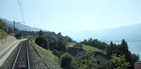 | MOB kører uden tandhjul og stigningerne er meget vekslende. Fra Montreux går det stejlt op af skråningen i to store slynger med forrygende udsigt over byen og Geneve-søen. |