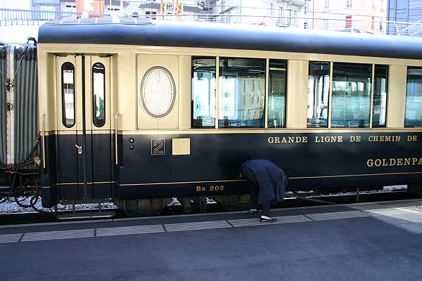 | Der slås på hjulene på en Pullman Salon vogn i Montreux inden afgangen. |