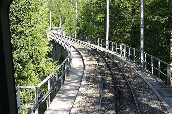 | Ved banens start i begyndelsen af forrige århundrede var der flot indkig til bygningsværket. Nu kniber det, men der er heroppe anlagt en sti med forklarende tekster omkring banen. Der køres mellem 14 og 20 km/t. Efter at der er blevet bygget nogle lavine-gallerier kunne man fra 1993 også køre om vinteren (men der er ikke skisport knyttet til banen). |