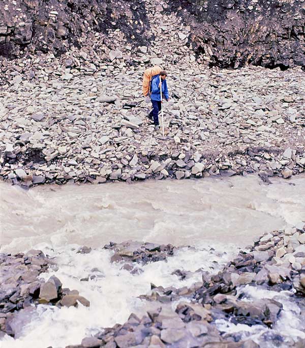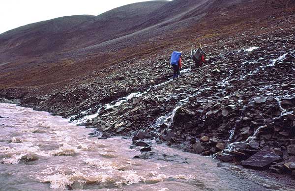 | Det blev ikke bedre efterhånden som dalen snævrede ind, og til sidst blev vi presset ned i flodlejet. |