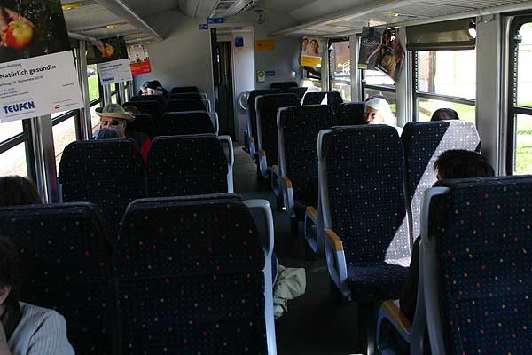 | Et "forlænget" tog (p.gr.a. det gode vejr) kører op til Gonten med kurs mod Wasserauen mandag d. 20.9. 2010. |