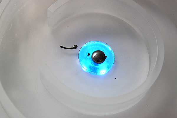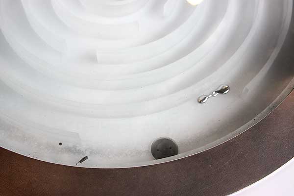 | Var man ikke meget forsigtig, blev kviksølvet skilt ad og opførte sig markant som dråber. Det gjaldt om at få så meget som muligt kviksølv hen mod målet, som enten var i midten eller ude i periferien. Målet står og blinker. |