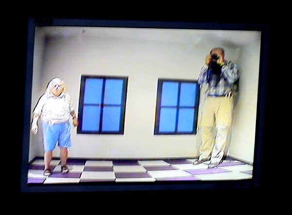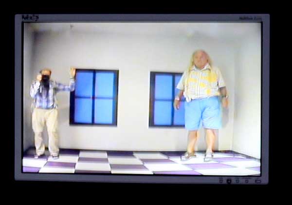 | Ames rum En ret kompakt udgave til to, maks. tre personer, der virkede fint. Desværre havde man valgt ikke at lave et kik-hul lige ved kameraet (foto er fra monitoren med medkig). Det bør man have, så man med selvsyn kan se, at illusionen virker netop fra ét sted! |