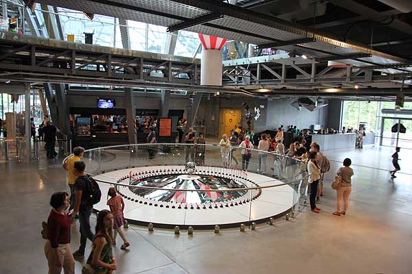| Blæret med egen metrostation! Deres forhal og kø-område fungerer rigtig skidt. Hvordan går man ind og ud? De har både farvede armbånd og kreditkort-størrelse rfid-kort. Ikke optimalt. Der er heller ikke nemt at finde rundt, når man først er inde. Men Foucault pendulet lige indenfor er til gengæld et udmærket samlingspunkt og sted at "hænge ud" både ved ankomst og ved afslutning af besøget. |