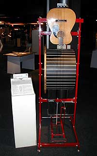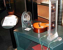 | OscylinderScope 1 / Se guitarstrengens bølger / svingninger Norman Tuck 1977 Tromle, der laver vandrette streger, så de svingende guitarstrenge (sorte) ses som fastfrosne bølger. Også set andre steder som "købeobjekt". Meget overbevisende, man kan fx både se og høre at den ene streng er ustemt! |