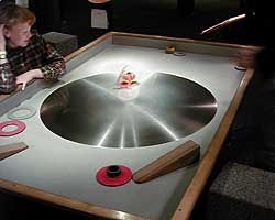 | Science Centret i Winthertur ligger i Schweitz, lidt nord for Zürich. Det hedder Technorama og er en kæmpe oplevelse! De har netop bygget nyt og udvidet. 500 opstillinger. Det er et virkeligt fænomen-Science Center, hvor det opleves som om at en flok dygtige fysikere er gået sammen med et par rigtig gode designere. Opstillingerne var ofte lidt abstrakte, altså uden megen relation til almindelig publikums hverdag, men til gengæld var det smukke og velfungerende eksperimenter! Og så har de været på indkøb af gode ting ude i verden! |