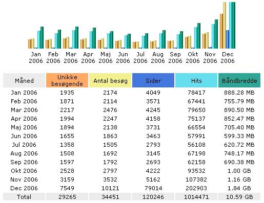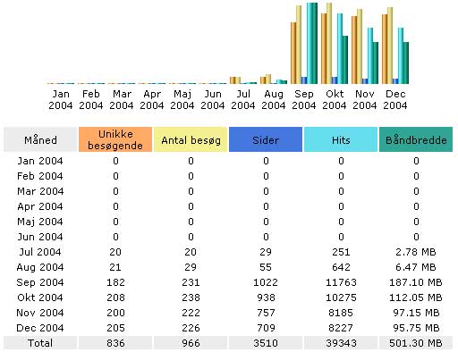 | Sitets statistikmodul begyndte - som det kan ses - i juni 2004. Sitet åbnede 15. 11. 2000 med beskedne besøg. |